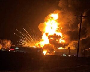 The explosion left houses burned down, leading to a lot of fatalities, forcing injured people to seek medical treatment.
