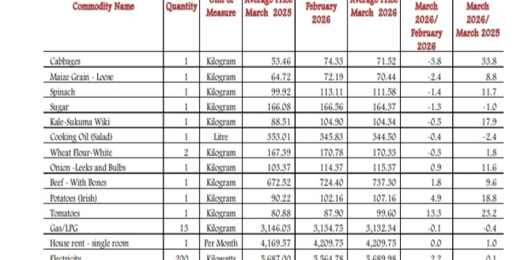 The latest data from the Kenya National Bureau of Statistics (KNBS) shows clear shifts when compared to February prices.