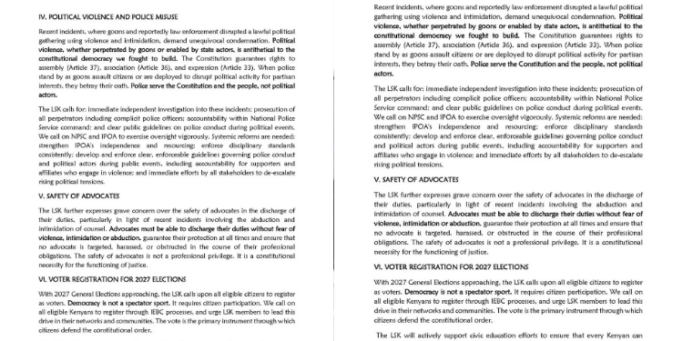 Further, the LSK pressed for accountability within the command structure of the National Police Service and called on oversight bodies to act decisively.